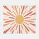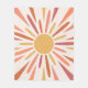 Abstract retro style sunshine illustration with pink, brown, orange, purple, and yellow sun rays decoration on pastel pink background for summer lovers.