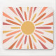 Abstract retro style sunshine illustration with pink, brown, orange, purple, and yellow sun rays decoration on pastel pink background for summer lovers.