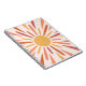 Abstract retro style sunshine illustration with pink, brown, orange, purple, and yellow sun rays decoration on pastel pink background for summer lovers.
