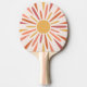Abstract retro style sunshine illustration with pink, brown, orange, purple, and yellow sun rays decoration on pastel pink background for summer lovers.