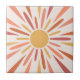 Abstract retro style sunshine illustration with pink, brown, orange, purple, and yellow sun rays decoration on pastel pink background for summer lovers.