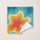 Abstract illustration of colourful retro style swirl design in blue, turquoise, beige, orange, red and mustard colours