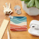Abstract retro style illustration of colourful (red, blue, orange, navy blue, beige, turquoise) waves decoration on white background. You can add your name/monogram to personalise the item.