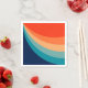 Abstract illustration of colourful (red, orange, blue, turquoise, navy blue) sun rays with curvy geometric stripes decoration