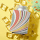 Colourful retro vibes abstract illustration with wavy pink, purple, green, grey, turquoise, yellow and orange wavy sun rays on pastel background for everybody who likes groovy retro style designs.