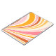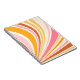 Colourful retro vibes abstract illustration with wavy pink, purple, brown, beige, yellow and orange wavy sun rays on pastel background