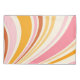 Colourful retro vibes abstract illustration with wavy pink, purple, brown, beige, yellow and orange wavy sun rays on pastel background