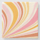 Colourful retro vibes abstract illustration with wavy pink, purple, brown, beige, yellow and orange wavy sun rays on pastel background
