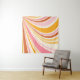 Colourful retro vibes abstract illustration with wavy pink, purple, brown, beige, yellow and orange wavy sun rays on pastel background