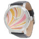 Colourful retro vibes abstract illustration with wavy pink, purple, brown, beige, yellow and orange wavy sun rays on pastel background