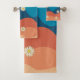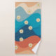Colourful Retro Waves & Daisies Pattern Bath Towel Set