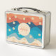Colourful Retro Waves & Daisies Pattern Monogram Metal Lunch Box
