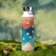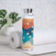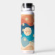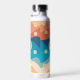 Colourful Retro Waves & Daisies Pattern Monogram Water Bottle