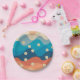 Colourful Retro Waves & Daisies Pattern Paper Plate