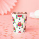 Boy's birthday party paper cups with colourful cartoon graphics of a robot pattern. Matching products are available.