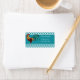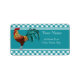 Colourful light and dark brown rooster with green tail feathers over a gingham checked pattern on a diagonal in teal green. Personalise the teal ribbon across the label with your address or other information.
