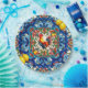 Colourful,vibrant rooster bird,Mediterranean tiles,lemon art