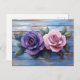 Colourful Roses on Rustic Wooden Background Postcard