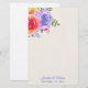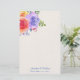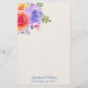 Stationery personalised with your wedding date and names. Designed with a fanciful floral bouquet with watercolor roses. Stylish, whimsical and creative. A bundle of roses in pink, purple and yellow. With lots of sprigs and leaves in green, pink, purple and blue. Background is an off-white champagne colour.