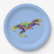 Colourful Running T Rex Psychedelic Dinosaur Art Paper Plate