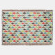 A colourful scalloped pattern throw blanket in various colours including blue, teal, red, black, light green, brown, and white, perfect for the living room, den, bedroom, or family cabin!
