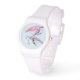 Colourful watch watercolor design features a colourful pair of sea turtles on light blue background