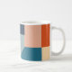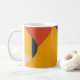 An abstract and modern image featuring geometric segments in vibrant shades of orange, yellow, blue, and beige arranged in a bold pattern.