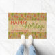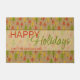 Cute contemporary Scandinavian style doormat with red orange, green, and mustard ochre yellow coloured pine trees pattern design. Vintage, funky, modern hipster design for the lover of winter and December holiday themes. With room to customise or personalise with a a family name, or individual names, of your choice.