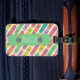 Colourful skateboard pattern in summer colours on quirky personalised luggage tag.