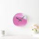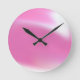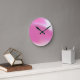 Wall clock covered in a colourful smudge of pink and white. Customisable.