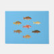 This seafood theme doormat is decorated with colourful saltwater fish; snappers and their relatives. Members of the snapper family are found around mangroves, coral reefs, shipwrecks, and other underwater structures. The background of this doormat is set to sea blue, but can be set to other colours prior to purchase.