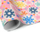 Colourful Snowflakes on Pink Holiday Pattern Wrapping Paper