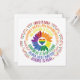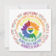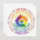 Colourful word art design gives a shout out to a variety of social justice movements including Black Lives Matter, Science is Real, Love is Love, Women's Rights are Human Rights, and more. Centre of graphic is rainbow flower and heart.