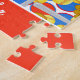 A colourful softball jigsaw puzzle, this fun filled item displays soft ball mittens, balls, and bats, this puzzle can be customised in a variety of ways.