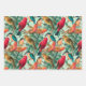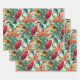 Colourful Songbirds & Green Leaves Pattern Wrapping Paper Sheet