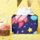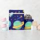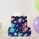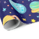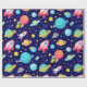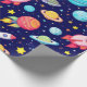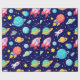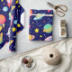 A vibrant seamless pattern showcasing cartoon rockets, planets, stars, and galaxies against a dark background.