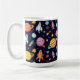 Vibrant seamless pattern showcasing rockets, planets, and stars against a dark space background. Perfect for educational, decorative, or children's themed designs related to the universe and outer space.