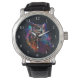 owl colourful universe halloween, beautiful drawing wild branch, space illustration art bird, animal painting colourful owl,