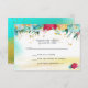 Response card features colourful watercolor washes and sparkly glitter adorned with watercolor flowers in bright colours. Text can be changed to fit your event.