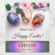 A festive artistic wine label with Easter eggs, spring blossom and a neon text background area.