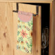 Beautiful and colourful vintage spring pink peach yellow flowers with leaves hand drawn seamless pattern girly name monogram on yellow background kitchen towel. It's a beautiful and cute any occasional unique gift for her who loves colourful spring flowers. You can change the text and colour by Zazzle's customisation tools.