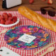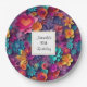 Paper plates with a cool digital 3d style pattern. Bright and colourful flowers with a cool style which looks like paper cutouts. Fun and fanciful design.
