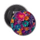 Bottle opener with a cool digital 3d style pattern. Bright and colourful flowers with a cool style which looks like paper cutouts. Fun and fanciful design.