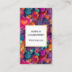 Business cards with a cool digital 3d style pattern. Bright and colourful flowers with a cool style which looks like paper cutouts.