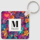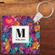 Colourful Spring Flowers Pattern Monogram Key Ring