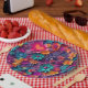 Paper plates with a cool digital 3d style pattern. Bright and colourful flowers with a cool style which looks like paper cutouts. Fun and fanciful design.