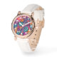 A watch with a cool digital 3d style pattern. Bright and colourful flowers with a cool style which looks like paper cutouts.