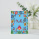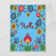 Colourful Spring Flowers Post Card 'Hello' Blue