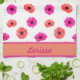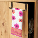 A beautiful and cute luminous tropical summer girly pink peach flowers 3D style seamless pattern with personalised name kitchen towel. It's a beautiful and trendy designs any occasional like Christmas, birthday, mother's day or valentine's day unique gift for her who loves colourful spring flowers. You can change the text and colour by Zazzle's customisation tools.
