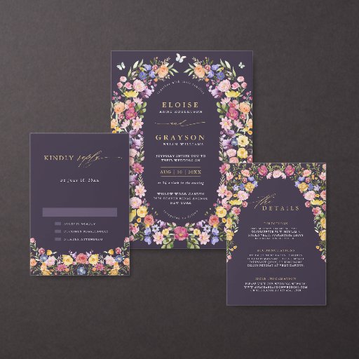 Colorful wildflowers on purple background.Designed by Bliss Design Studio